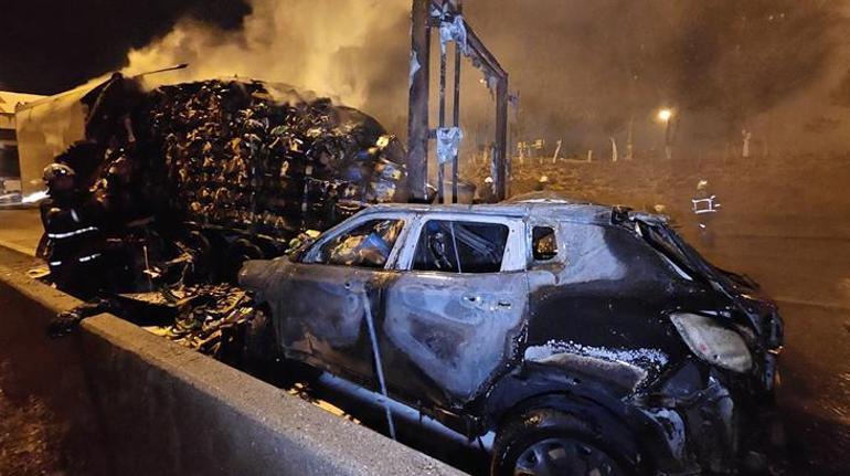 Adana’da, otoyolda 3 aracın karıştığı zincirleme kazada TIR’a arttan çarpıp, alev alan arabadaki Mustafa E. ve yanındaki Hatice Ç.’yi etraftaki vatandaşlar kurtardı.