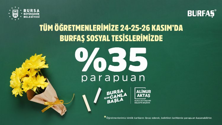 Öte yandan aynı tarihlerde tüm öğretmenler Burfaş tesislerinde yaptıkları harcamalarda da yüzde 35 parapuan kazanacak.