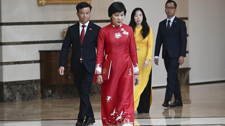 Cumhurbaşkanlığı Külliyesi’ndeki kabulde Belarus Büyükelçisi Anatoly Glaz, Brezilya Büyükelçisi Gilda Motta Santos Neves, Ekvador Büyükelçisi Pedro Vintimilla, Gürcistan Büyükelçisi Archil Kalandia ve Vietnam Büyükelçisi Dang Thi Thu Ha, Cumhurbaşkanı Erdoğan’a itimat mektuplarını sundu.