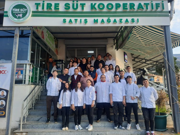 Gezi kapsamında, öğrenciler ilk olarak Tire Süt Kooperatifi’nin üretim tesislerini ziyaret ettiler. Bu tesiste, süt ve süt ürünlerinin nasıl işlendiğine, kaliteli et ve et ürünleri üretimini ve bu kalite standartlarının nasıl korunduğuna tanık oldular. Daha sonra, öğrenciler Türkiye’nin en büyük semt pazarlarından biri olan ve yerel ürünlerin çeşitliliğiyle ünlü Tire’nin Salı Pazarı’nı gezdiler. Pazar gezisi, geleceğin şeflerine yerel malzemelerle çalışmanın önemini ve bu ürünlerin gastronomiye nasıl entegre edilebileceğini gösterdi.