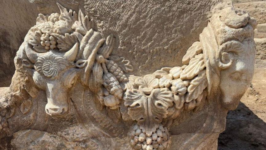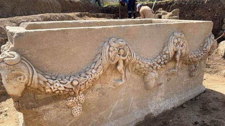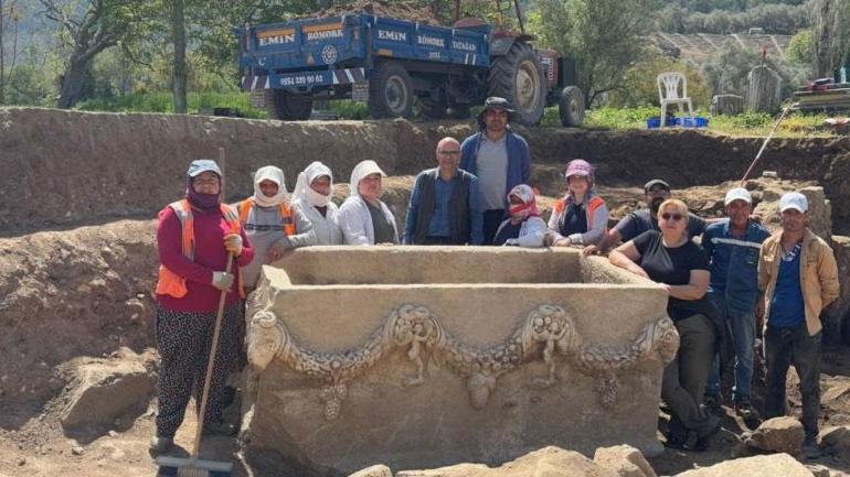 “Antik periyotta Stratonikeia’nın bir lahit üretim merkezi olduğu düşünülmektedir” diyen Söğüt, “Roma Hamamı, bouleuterion (Meclis Binası) ve Gymnasion (Spor Okulu) üzere yapıların bulunduğu yerden, tiyatroya giden yol üzerinde, agora (etrafında kamu binalarının bulunduğu kentle ilgili politik, dini, ticari her türlü faaliyetin gerçekleştiği yapı) olduğu düşünülen yerde 2025 yılında hafriyatlar ağırlaştırılmıştır. Burada Erken Hakikat Roma (Bizans) Devri düzeyinde yapılan çalışmalarda girlandlı (meyve, çiçek ve yapraklardan oluşan çelenk), bir lahit mezar bulundu. Bu lahit antik devirde kentin nekropol (mezarlık) alanında getirilip burada tekrar kullanılmıştı. Bu lahdin dış kısmında bulunan girlandı köşelerde koç başları orta kısımda boğa başları ve eroslar (antik periyotta aşk tanrısı) taşımaktadır. Girland betimlemeleri çam kozalağı, haşhaş, nar ve üzüm üzere meyveler ile yaprak ve çiçeklerden oluşmakta devrin özelliği olarak olabildiğince gösterişli işlenmiş bir çelenkten oluşmaktadır. Üzerindeki mimari süslemelerine nazaran tarihi daha net olarak belirlenebilmektedir. Stratonikeia antik kentinde daha evvel de lahit ve lahit kesimleri bulunmuştu. Bu kentte bilinen örnekler içerisinde en erken ve en hoş betimlenen örnek durumundadır. Antik devirde Stratonikeia’nın bir lahit üretim merkezi olduğu düşünmekteydi. Yeni çalışmalarda bulunan eserler bu kanıyı desteklemektedir. Bu lahit alandaki çalışmaları tamamlandıktan sonra antik kent içinde uygun bir alanda sergilenmeye devam edecektir” biçiminde konuştu.