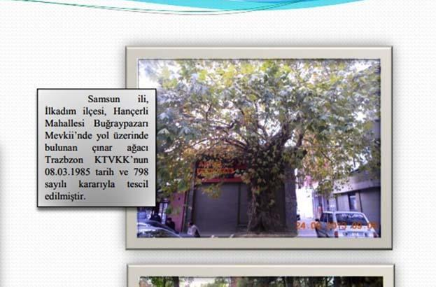 Çevre, Şehircilik ve İklim Değişikliği Bakanlığı tarafından Samsun genelindeki 20 anıt ağaçtan biri olarak tescillenen çınar ağacı, 1985 yılında Trabzon Kültür ve Tabiat Varlıklarını Muhafaza Kurulu’nun kararıyla muhafaza altına alındı. Bakanlığın kayıtlarında, ağacın gövdesi yanmadan evvelki görkemli haline dair fotoğraf ve bilgiler de yer alıyor.