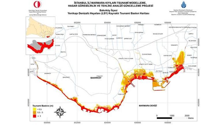 Prof. Dr. Ahmet Cevdet Yalçıner, “Tsunami için limitte bir sarsıntı. Fay uzunluğu fayın uzunluğu 12 km, kısa ve de direkt atımlı bir fay olmalı. Onun için bunun oluşturacağı dalga 40-50 santimi geçmez. Yani büyük bir sarsıntı, 7.2, 7.6 bile olsa. Bunun da hesaplarını yapmıştık. İstanbul Büyükşehir Belediyesi için hazırladığımız bir proje vardı. O proje kapsamında yapmıştık. 2019-2020’de bitirdik o projeyi. Orada sismik kaynaklı bu bölgede oluşacak tsunaminin kıyılardaki tesirlerinin az olacağı görüldü. Kimsenin başını karıştırmamak lazım, denizaltı heyelanı olursa o vakit dalga oluşması daha büyük olur. O hususlar da incelenmişti birebir proje kapsamında. İstanbul Büyükşehir Belediyesi’nin web sitesinde yer alıyor bu proje sonuçları ve raporlar. Araştırmalar yapılarak İstanbul’un Marmara kıyılarında tsunami tahliye levhalarıyla, işaretleriyle gök bölge işaretleri yerleştirilmiş durumda. Yani tsunami için yapılması gerekenler yapılmıştı. O nedenle bu hususta da şu kademede sarsıntıya hazırlık önemli” dedi.
