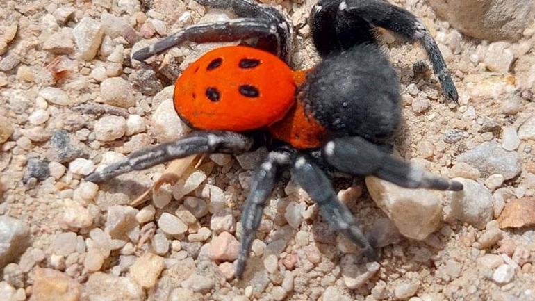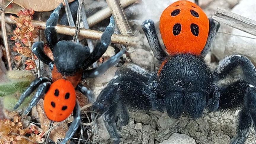 Çanakkale Kazdağları Biga Yarımadası’nda tabiat yürüyüşüne çıkan Orman Yüksek Mühendisi Mehmet Akkan, az görülen bir örümcek cinsine rastladı. Eresidae familyasına ilişkin olan uğur böceği örümceği; tabiatta sinek, bit, kene üzere küçük canlılarla besleniyor.