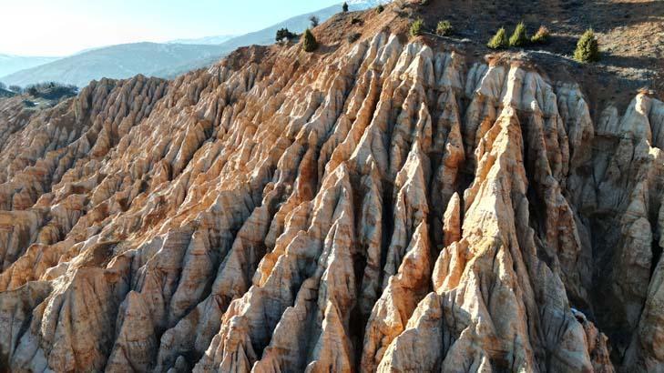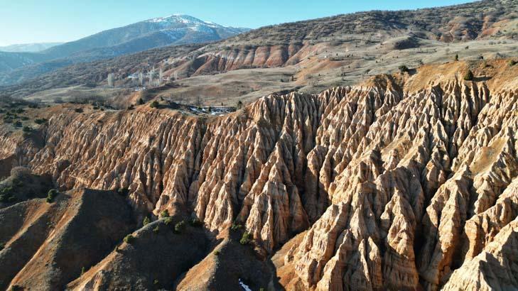 Sivas Cumhuriyet Üniversitesi (SCÜ) Eğitim Fakültesi Coğrafya Eğitimi Anabilim Kolu Öğretim Üyesi Dr. Fatih Kartal, Divriği ilçesinin farklı coğrafik yapısı olduğunu belirterek, “İç Anadolu Bölgesi, her ne kadar düzlükleriyle isimlendirilse da Sivas ilimiz ortalama yükseltisi İç Anadolu Bölgesi’nden fazla olan bir vilayetimizdir. Divriği ilçesi ise büsbütün Doğu Anadolu Bölgesi’nin hissedildiği çetin ve yüksek bir coğrafyaya sahip bir ilçemizdir. Buradaki birçok oluşumlar kendi içerisinde vadi sistemlerini de meydana getirmiş. Şeytan Kenti Kayalıkları da Divriği’de önemsenen ve önemli boyutta doğal hoşluğu olan, turizm cazipliği çok yüksek olan yerlerden bir adedidir. Bunun oluşumunu incelediğimiz vakit, yatay yapının faylanma sonucunda sıkıştırılmasıyla, yağışla ve akarsularla birlikte kısmi olarak bir kırgıbayır sistemi oluşturduğunu görüyoruz. Divriği’de de önemli bir kırgıbayır sıklığı var. Bu kırgıbayır halinin oluşumu da büsbütün halk tarafından Şeytan Kenti Kayalıkları profiline dönüştürülmüş. Burada büsbütün kayaçların aşındırma profilleri ortaya çıkmıştır. Bu çeşit alanların oluşumu bilhassa ‘Şeytan Kenti Kayalıkları’nın oluşumunun miyosen devrine ilişkin olduğunu görüyoruz. Bu periyottaki oluşumlar kendisini hala önemli boyutta yenileyebiliyor” dedi.