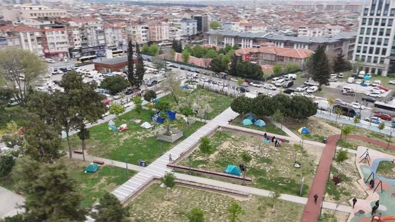 Zeytinburnu Millet Bahçesi’nde kurulan çadırlar havadan görüntülendi